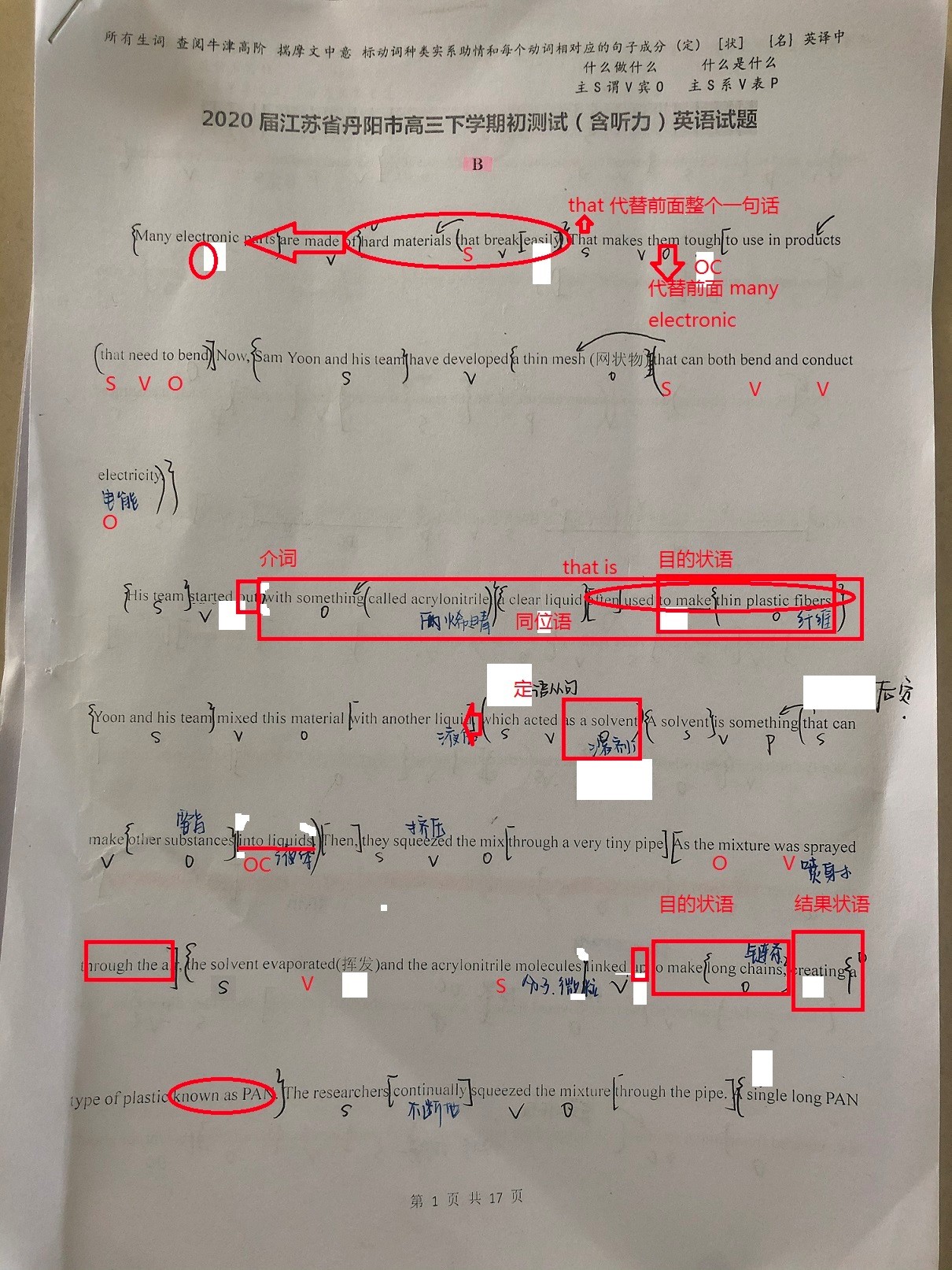 一 生词查得还不够, 二 句子成分划的不对, 三 题目做错,就说明文章不理解,但这一点孩子没有当回事情。